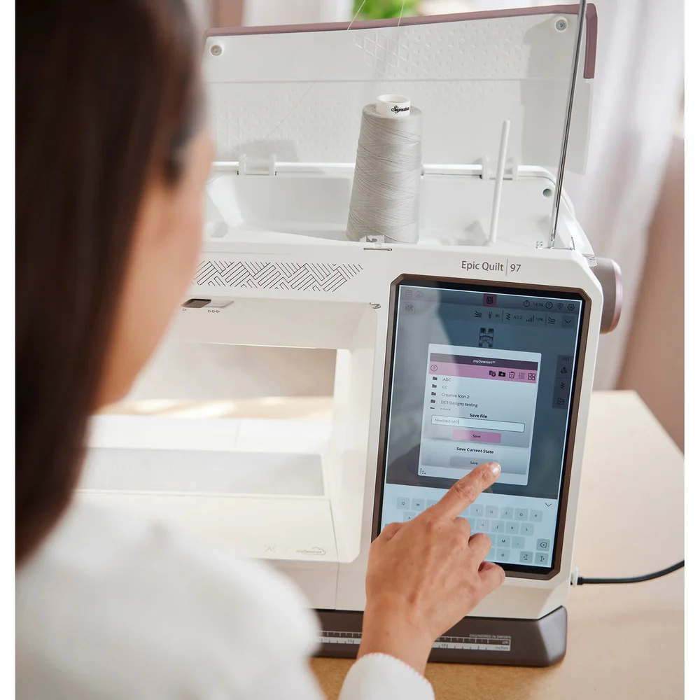 The EPIC™ QUILT™ 97 can make quilt dreams real. From projection that helps place and guide stitches, to the spacious workspace that can handle even king-sized quilts, this machine was designed for quilters.The included accessory kit enhances your quilting, making creativity effortless.