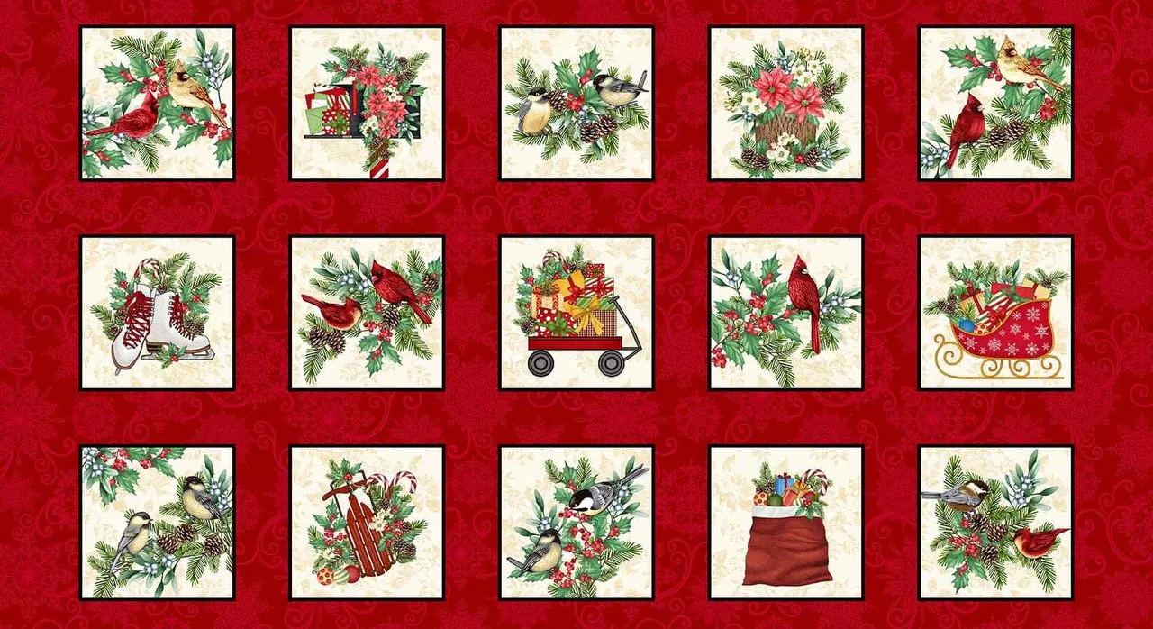 Studio E Blooms of the Holiday Red Multi 8388-88 (Bird Blocks)